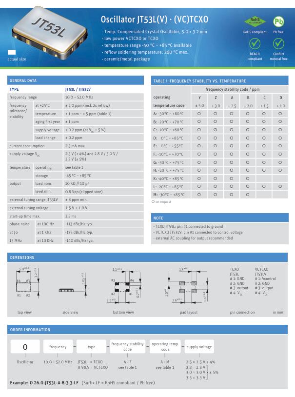 首頁企業博客 0 24.0-JT53L-Y-K-3.3-LF JAUCH溫補晶振5032 24M TCXO