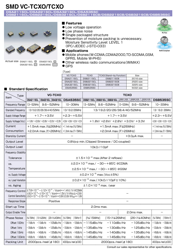 更多>>1XXA19200MEA日本KDS壓控溫補晶振DSA221SCL-SDN19.2M