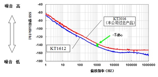 利用獨有的電路設計,將相位噪音特性(振蕩頻率的不穩定性)比本公司的過去產品降低了7dBc(26MHz@1kHz 偏移頻率),達到業內最高水準。相位噪音在高速無線通信領域是出現傳輸錯誤的根源,因此,對降噪措施而言它是非常重要的特性。本產品為減輕智能手機等高速大容量無線通信領域中降噪設計的難度、以及實現高品質的數據通信做出貢獻。