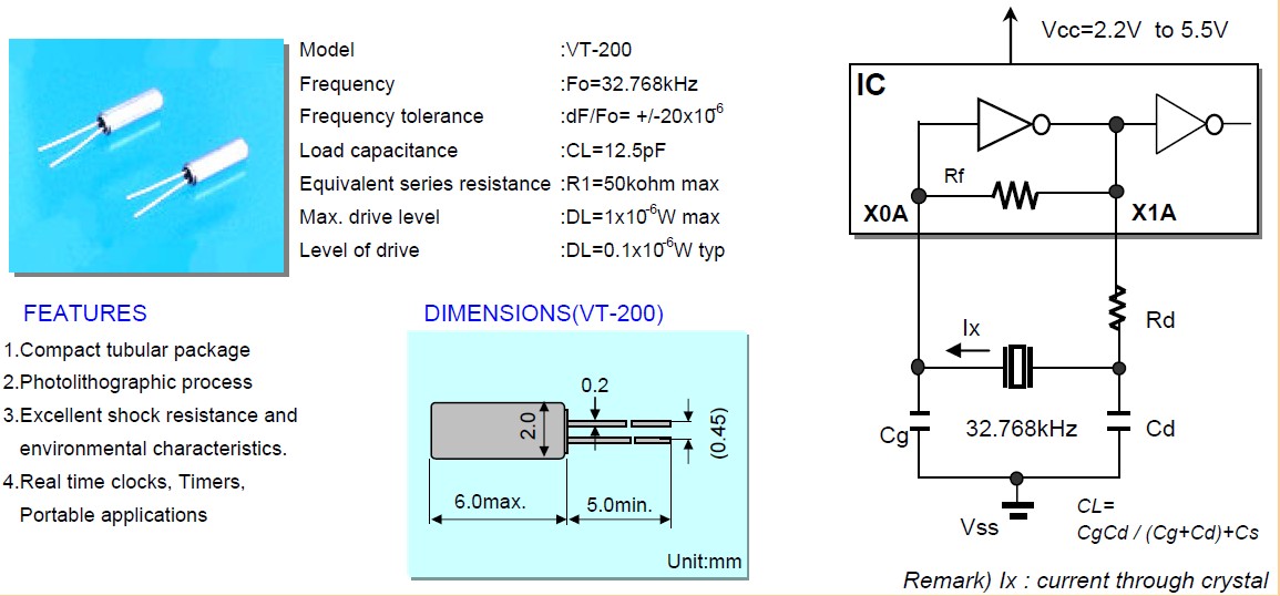 IC Maker IC name Quartz crystal CL(pF) Cg(pF) Cd(pF) Rd(kΩ)